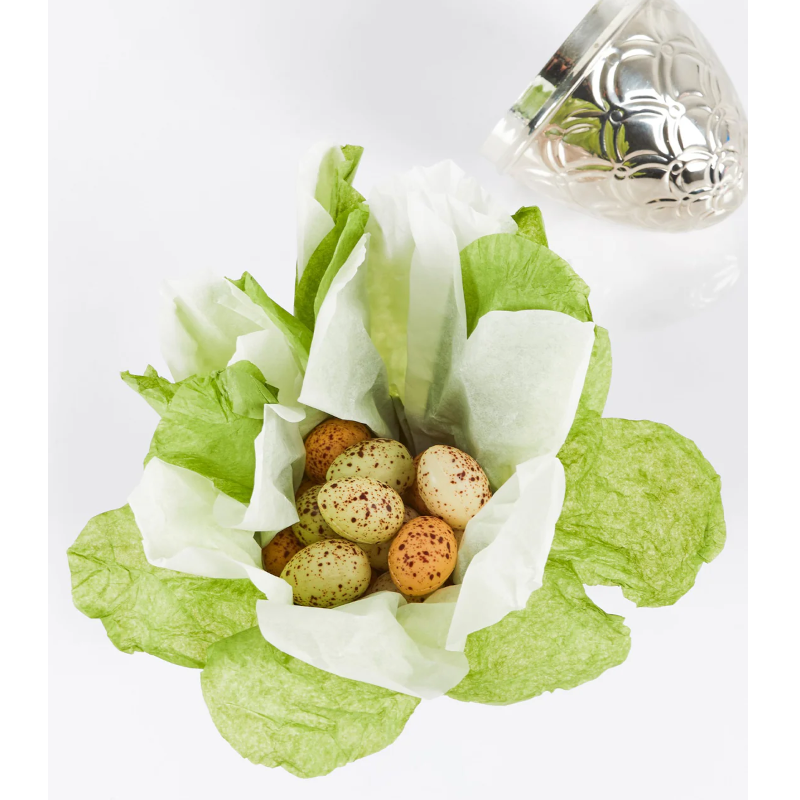 Ægget indeholder varianter af Summerbirds dejlige Quail Eggs: Amber Quail Eggs, Praliné Quail Eggs samt Lemon & Pistachio Quail Eggs