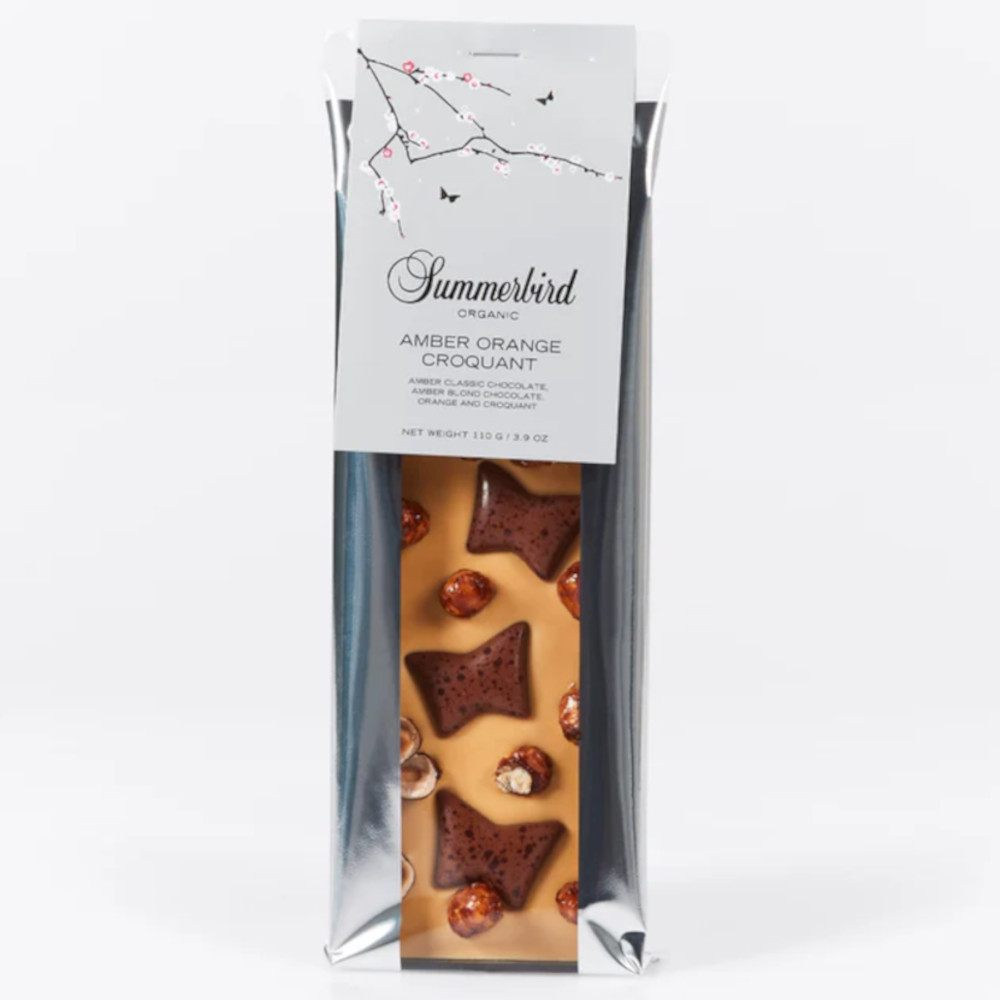 En raffineret kombination af Summerbirds Amber Classic-chokolade og Amber Blond, elegant afbalanceret med friske noter af appelsin og sprød krokant. Resultatet er en varm og harmonisk smagsoplevelse med et strejf af sødme og citrus.