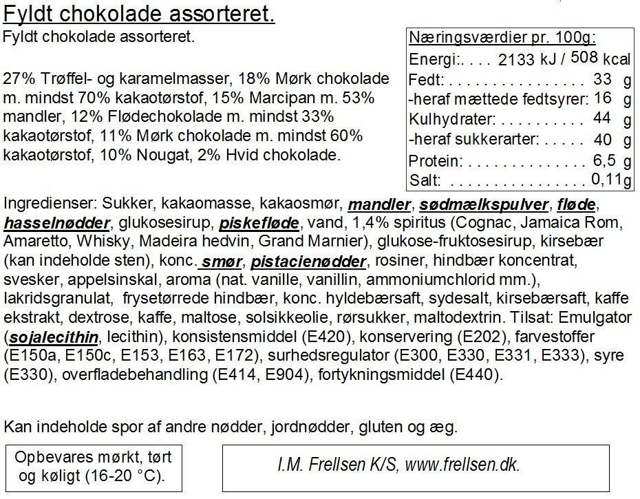 Gaveæsken indeholder 20 stk. dessertchokolader svarende til 250 g.