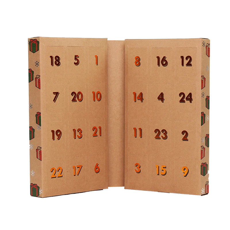 Julekalenderen indeholder økologisk kvalitetschokolade i børnevenlige udgaver. Chokoladekalenderen indeholder smagskombinationer som kiksekage m. mælkechokolade, hvid chokolade m. jordbær, nougat m. brændte mangler og mælkechokolade og mange flere.